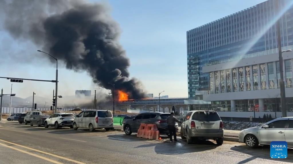 This video screenshot taken on Dec. 29, 2022 shows the fire site in Gwacheon, South Korea. (NEWSIS via Xinhua)
