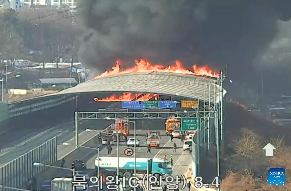 The fire site is seen at a sound-proof tunnel of the second Gyeongin expressway in Gwacheon, South Korea, Dec. 29, 2022. (NEWSIS via Xinhua)