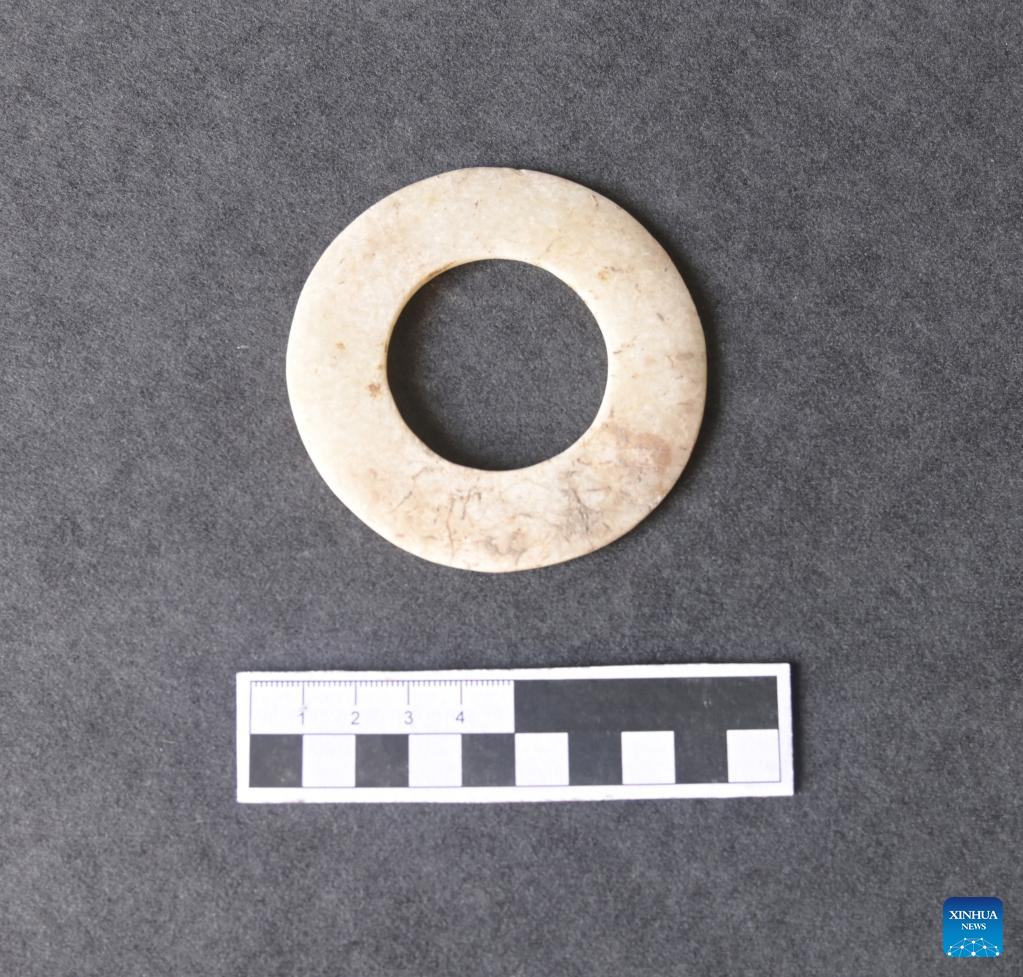 This undated file photo shows a piece of jade excavated at the Suyang relics site in the city of Luoyang, central China's Henan Province. (Xinhua)