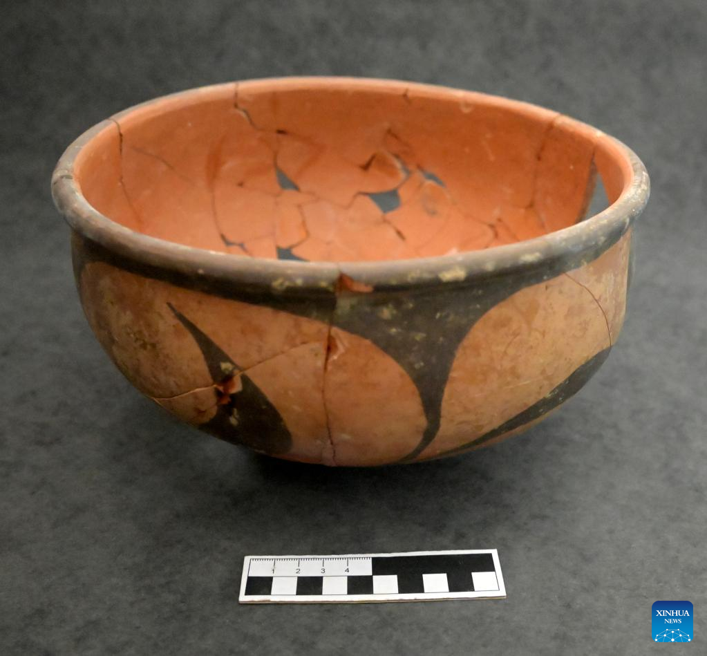 This undated file photo shows a piece of pottery ware excavated at the Suyang relics site in the city of Luoyang, central China's Henan Province. (Xinhua)