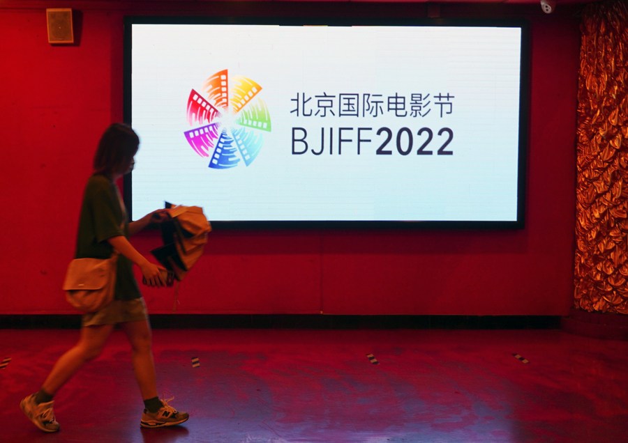 A woman waits to watch a movie in Red Theatre in Beijing, capital of China, Aug. 18, 2022. (Xinhua/Han Xiao)