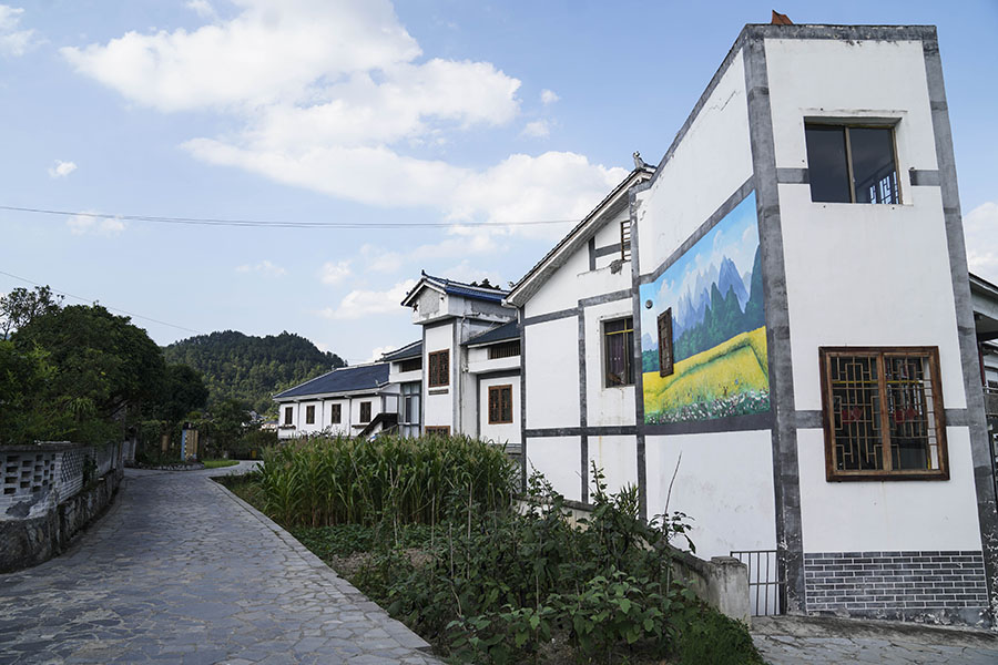 Photo shows a house with a mural painted on the wall in Huamao village, Zunyi city, southwest China’s Guizhou Province. (People’s Daily Online/Peng Yukai)