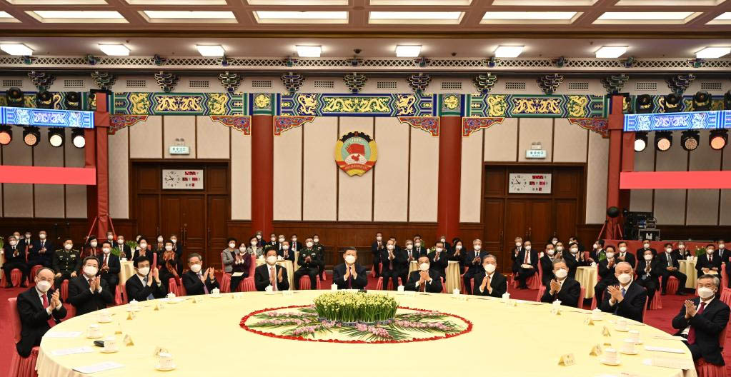 They were joined by leading officials of the central committees of non-CPC parties, and the All-China Federation of Industry and Commerce, prominent figures without party affiliation, officials of central Party and government departments, and individuals from various ethnic groups and sectors of society in Beijing.