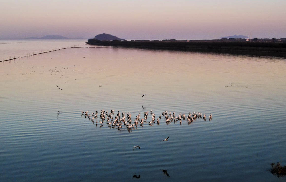Photo taken on Dec. 19, 2022 shows oriental white storks wintering in a national wetland park in Hefei, east China's Anhui province. The wetland park, as one of the wetlands built by Hefei around Chaohu lake, has attracted flocks of migratory birds. (Photo by Wang Shibao/People's Daily Online)