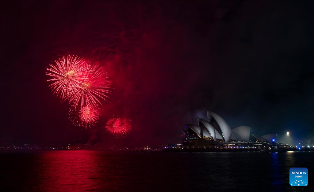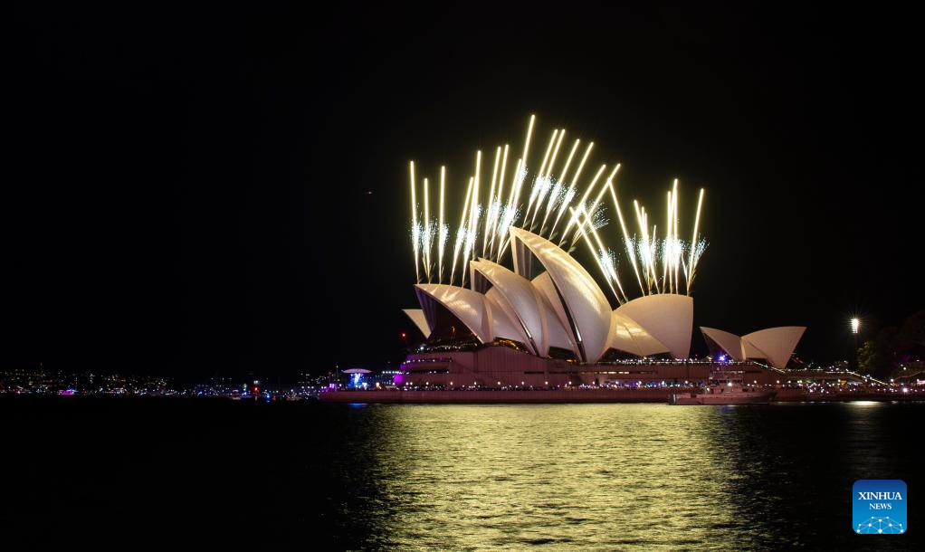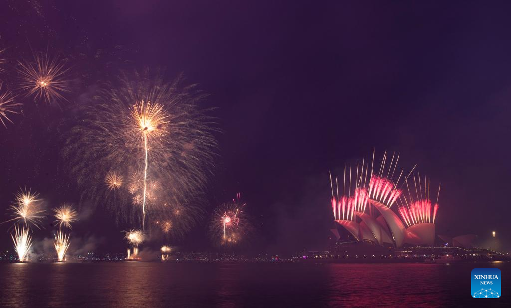 Fireworks are seen during the New Year's Eve celebrations in Sydney, Australia, Dec. 31, 2022. (Xinhua/Bai Xuefei)