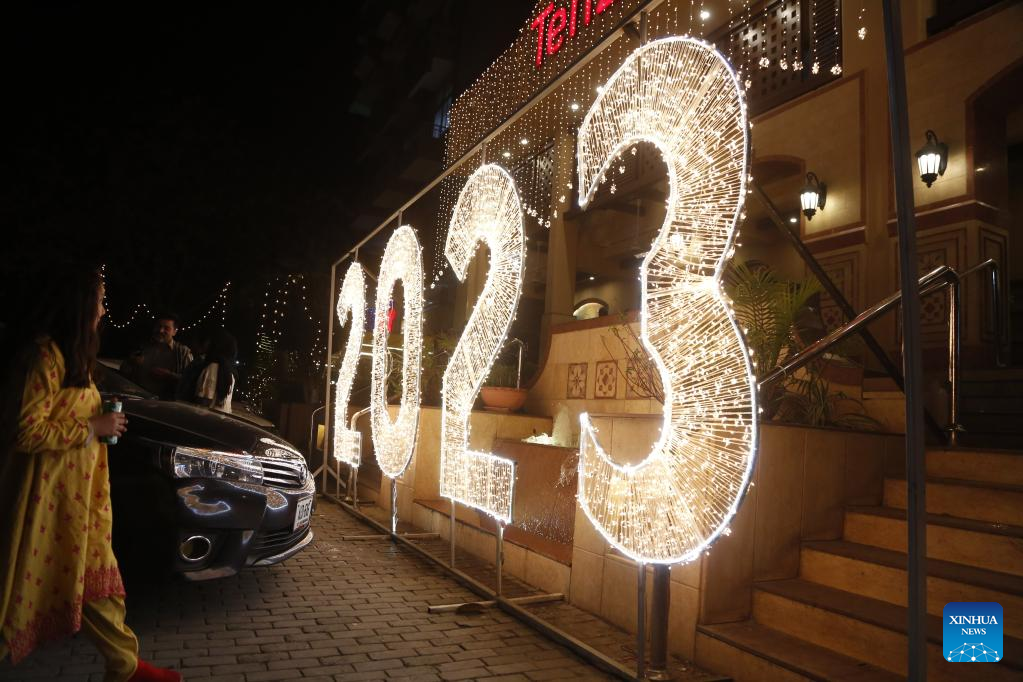 A light installation is pictured on New Year's eve in Islamabad, capital of Pakistan, Dec. 31, 2022. (Xinhua/Ahmad Kamal)