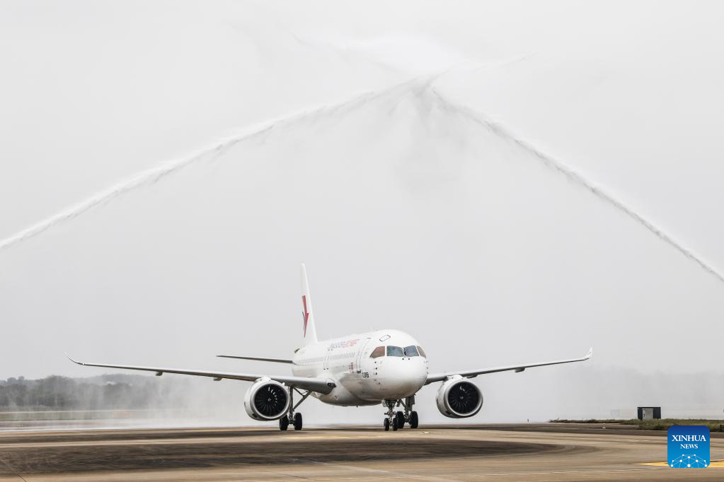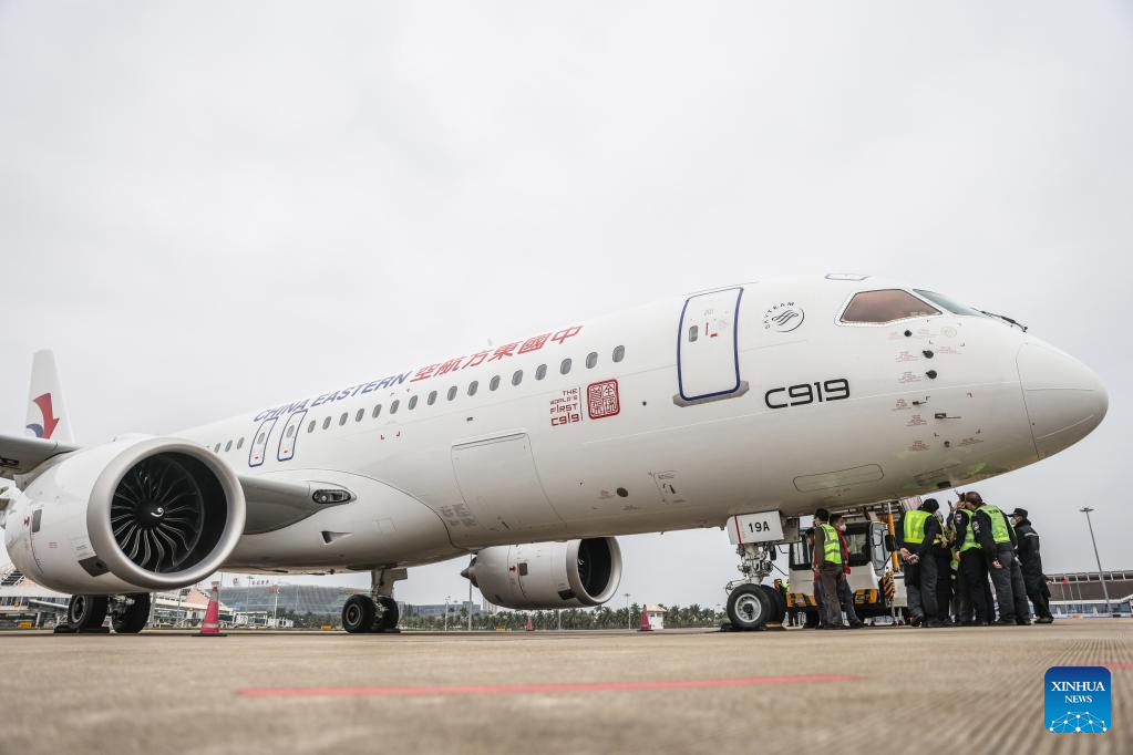 The aircraft, which belongs to China Eastern Airlines, landed at Meilan International Airport in Haikou, south China's Hainan Province on Monday as a part of the 100-hour aircraft validation flight process. The testing process will comprehensively verify the reliability of the C919 with commercial operation in mind -- with the aim of ensuring its safety and efficiency.