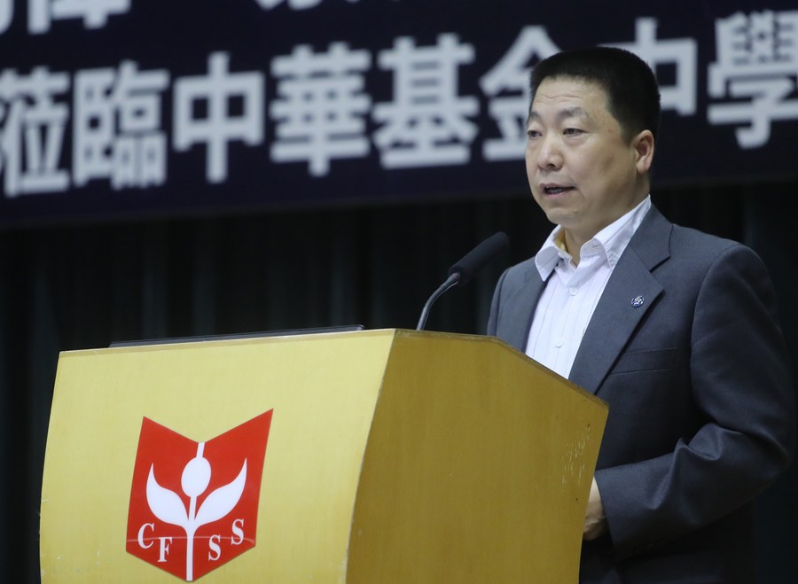 Astronaut Yang Liwei addresses a sharing session held by the Chinese Foundation Secondary School in Hong Kong, south China, June 28, 2017. (Xinhua/Lui Siu Wai)
