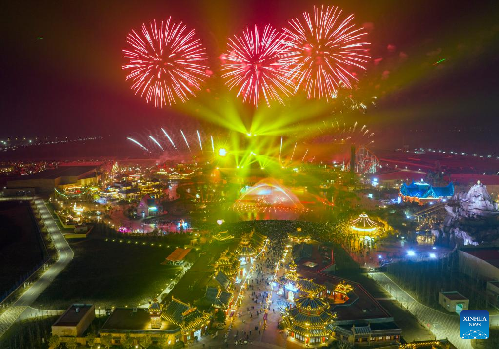Tourists celebrate upcoming New Year at Chimelong International Circus in Guangzhou, south China's Guangdong Province, Dec. 31, 2022. People take part in various leisure activities to spend the New Year holiday here. (Xinhua/Liu Dawei)