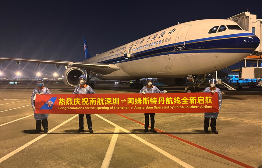 It marked the opening of the first direct passenger route linking China's southern metropolis of Shenzhen with the Netherlands, which is also the first new international passenger route opened by the airport in the past three years, signalling a recovery in the international passenger transport business once dented by the COVID-19 pandemic.