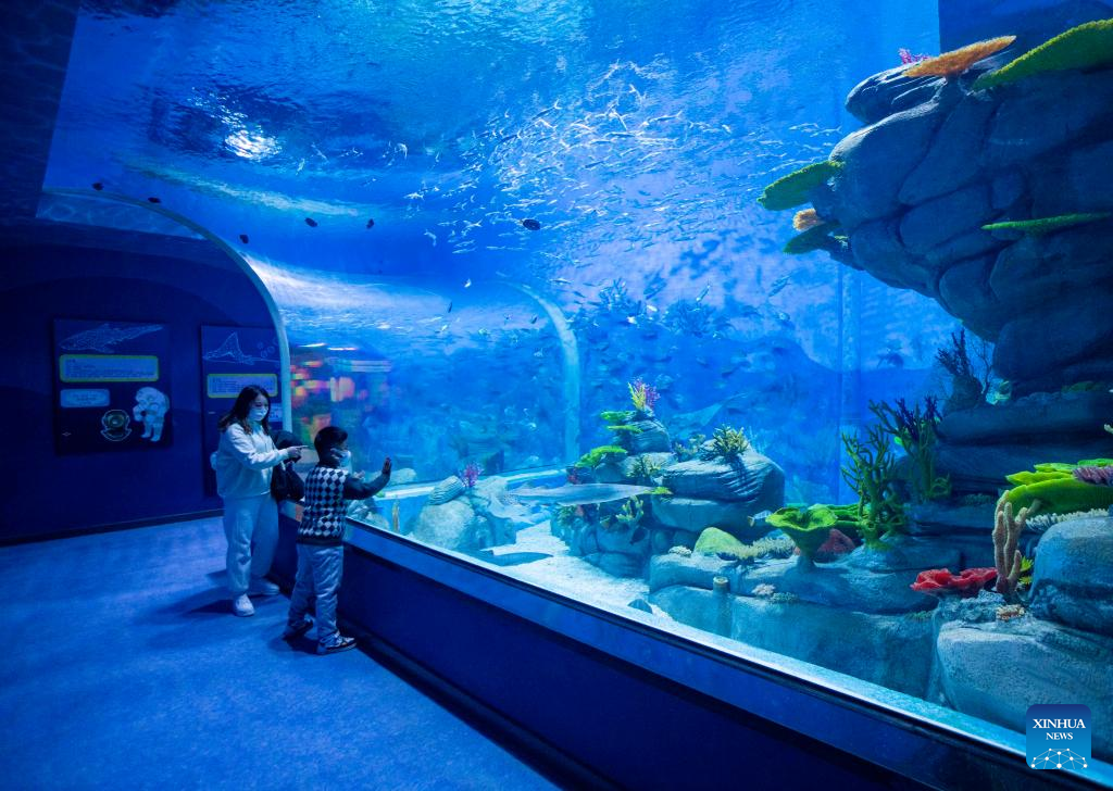 Tourists visit an aquatic organism conservation center to protect biodiversity in the Yangtze River and Poyang Lake, in Hukou County of Jiujiang City in east China's Jiangxi Province, Dec. 31, 2022. (Xinhua)