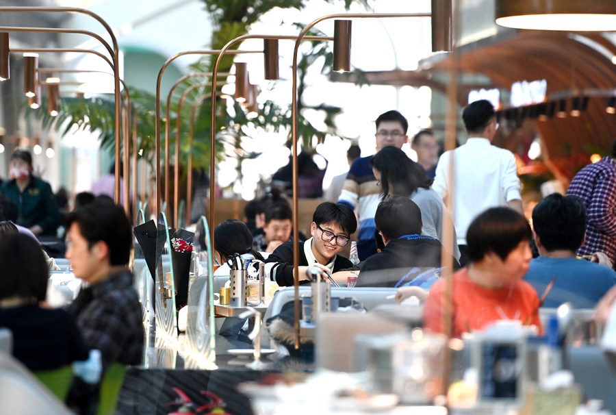 People enjoy buffet at a shopping mall in north China's Tianjin, Dec. 31, 2022, the first day of the New Year holiday. (Xinhua/Zhao Zishuo)