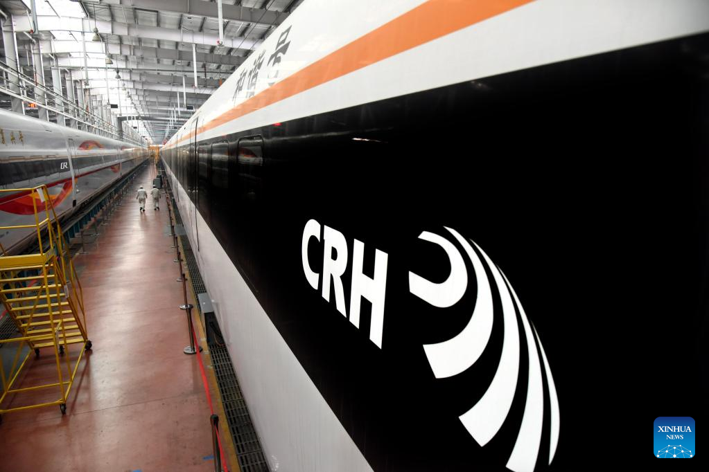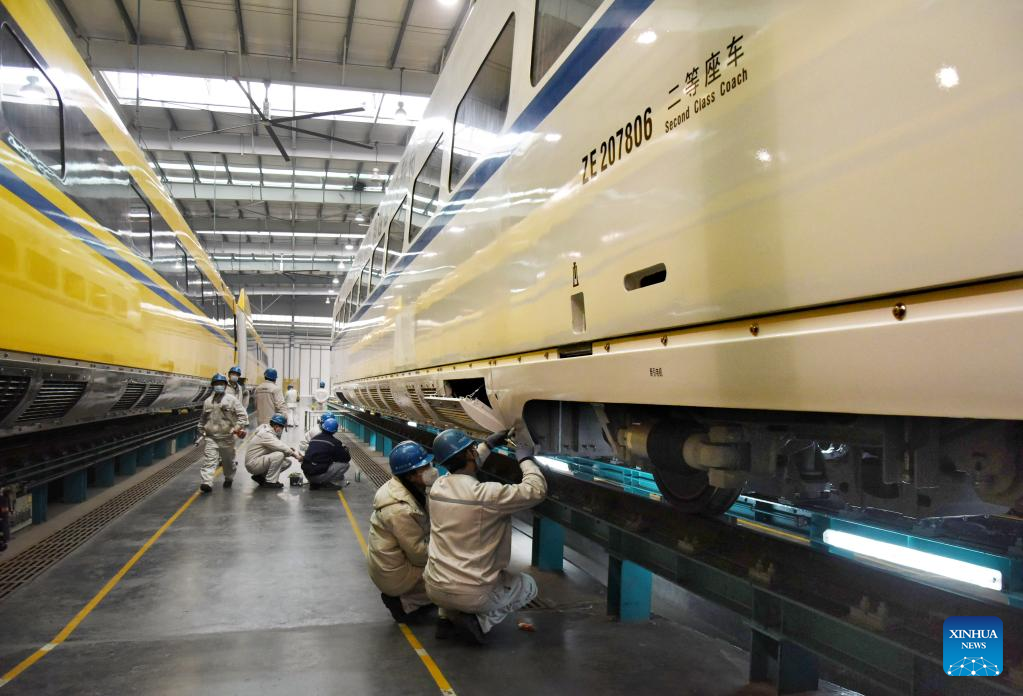 This photo taken on Jan. 4, 2023 shows a bullet train after its overhaul in Qingdao, east China's Shandong Province. (Xinhua/Li Ziheng)