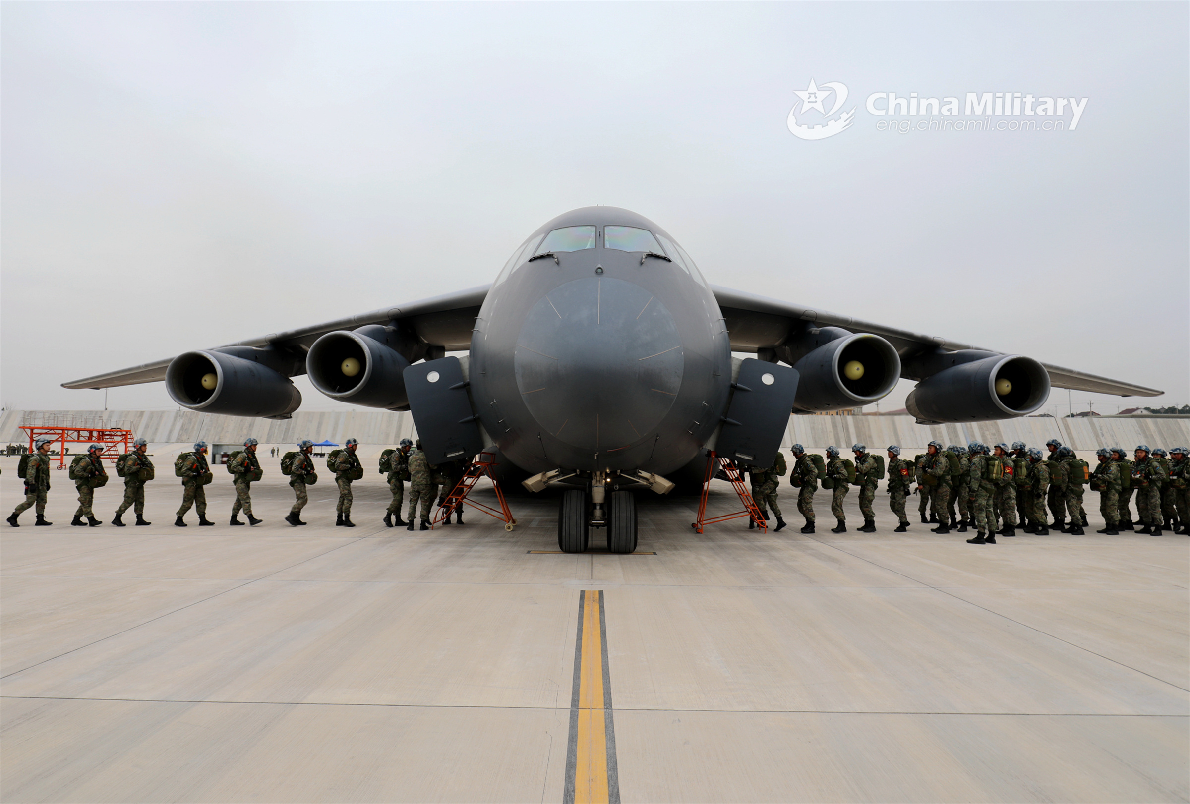 Airmen assigned to an airborne brigade of the PLA Air Force queue up for boarding during a parachuting training exercise in late December, 2022. (eng.chinamil.com.cn/Photo by Ma Pengfei)