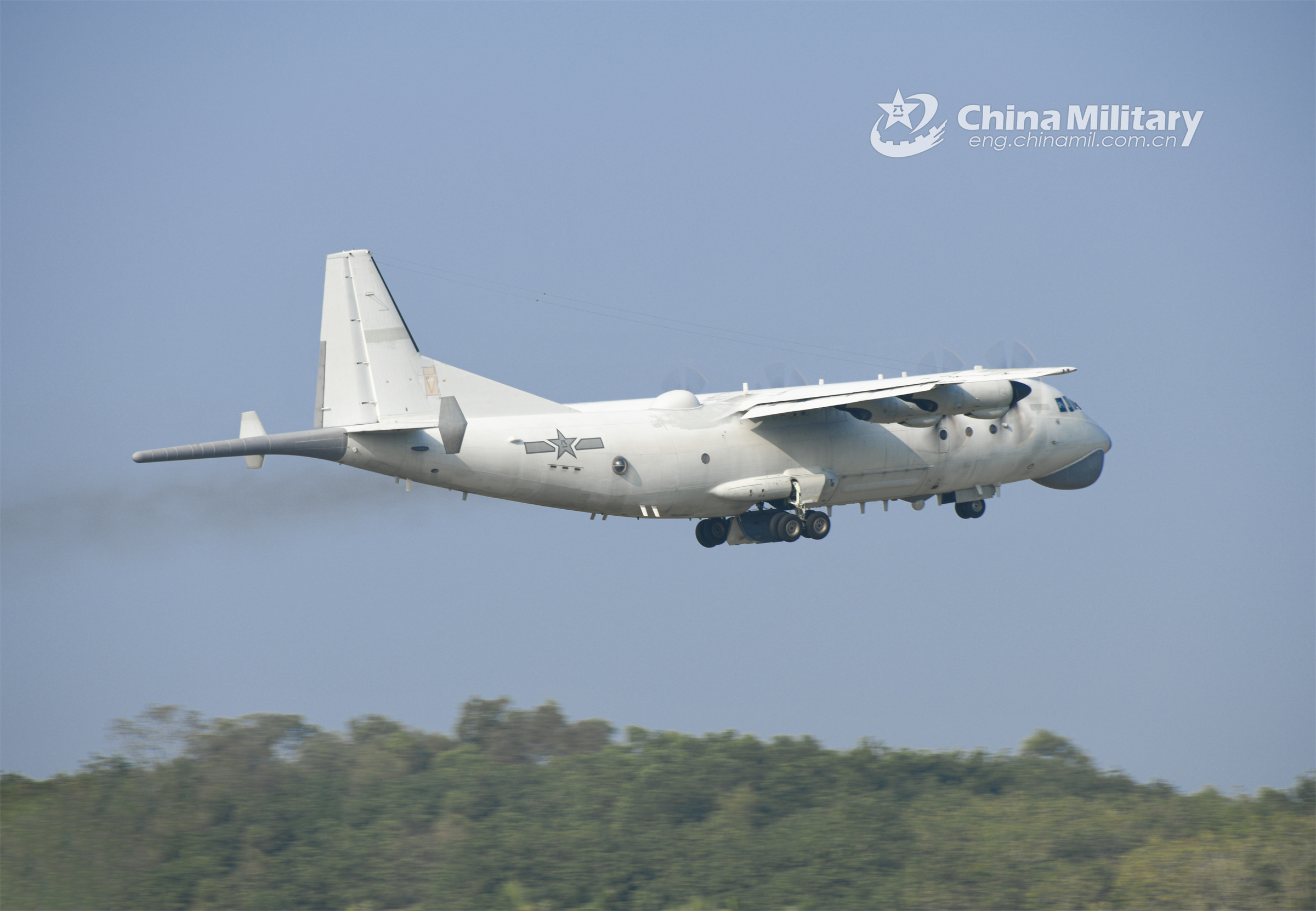 An antisubmarine aircraft attached to an aviation regiment of the naval force under the PLA Southern Theater Command takes off during an antisubmarine flight training exercise in late December, 2022. (eng.chinamil.com.cn/Photo by Qin Qianjiang)