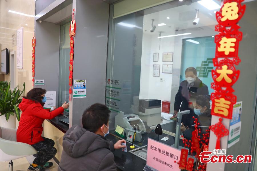People exchange commemorative coins for the Year of the Rabbit at the Jiangxi branch of the Postal Saving Bank of China in Nanchang, east China's Jiangxi Province, Jan. 5, 2023. (Photo: China News Service/Liu Zhankun)