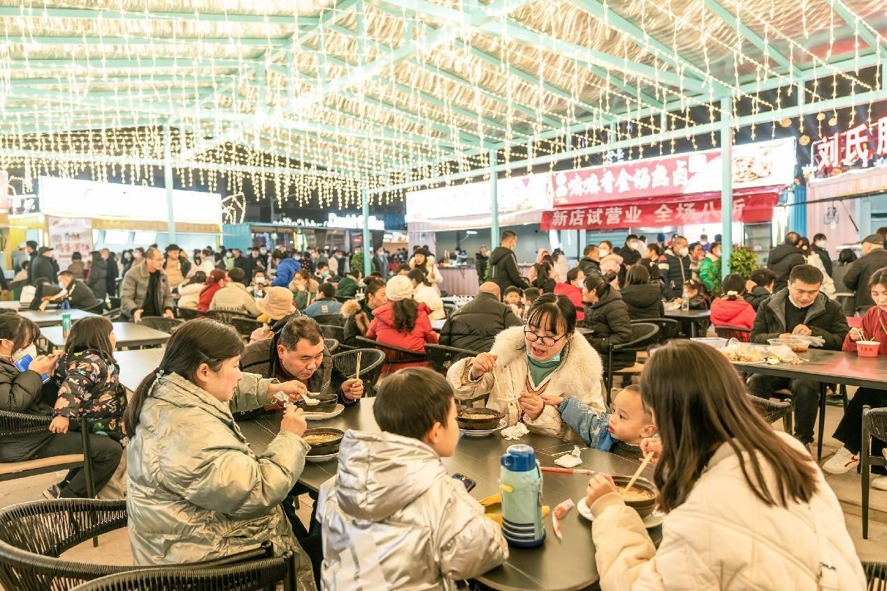 Citizens enjoy food in a night market in Huaying, southwest China's Sichuan province, Dec. 31, 2022. (Photo by Qiu Haiying/People's Daily Online)
