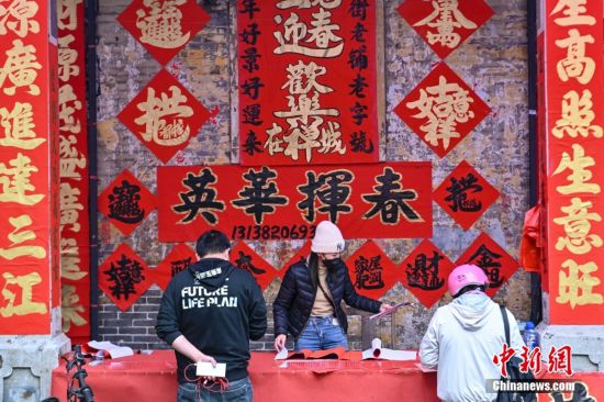 Customers select Spring Festival couplets to greet the upcoming Spring Festival in Foshan city, south China's Guangdong Province, Jan. 4, 2023. (China News Service/Chen Jimin)