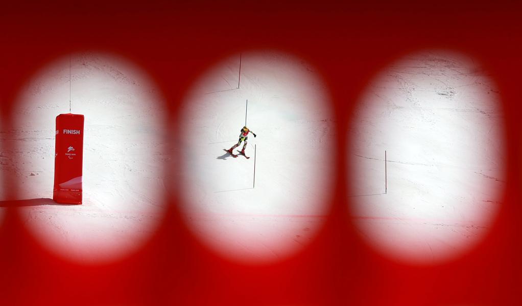 Anna-Maria Rieder of Germany competes during the Para Alpine Skiing Women's Slalom Standing of Beijing 2022 Winter Paraympic Games in Yanqing District, Beijing, capital of China, March 12, 2022. (Xinhua/Luo Yuan)