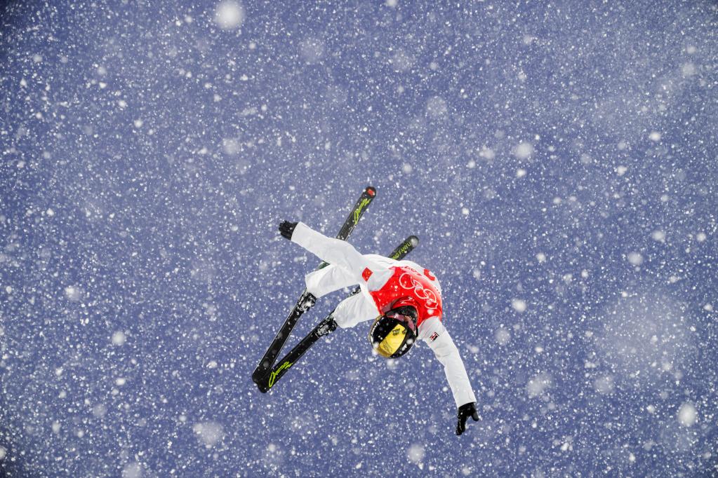 Kong Fanyu of China trains at Genting Snow Park in Zhangjiakou, north China's Hebei Province, Feb. 13, 2022. (Xinhua/Fei Maohua)