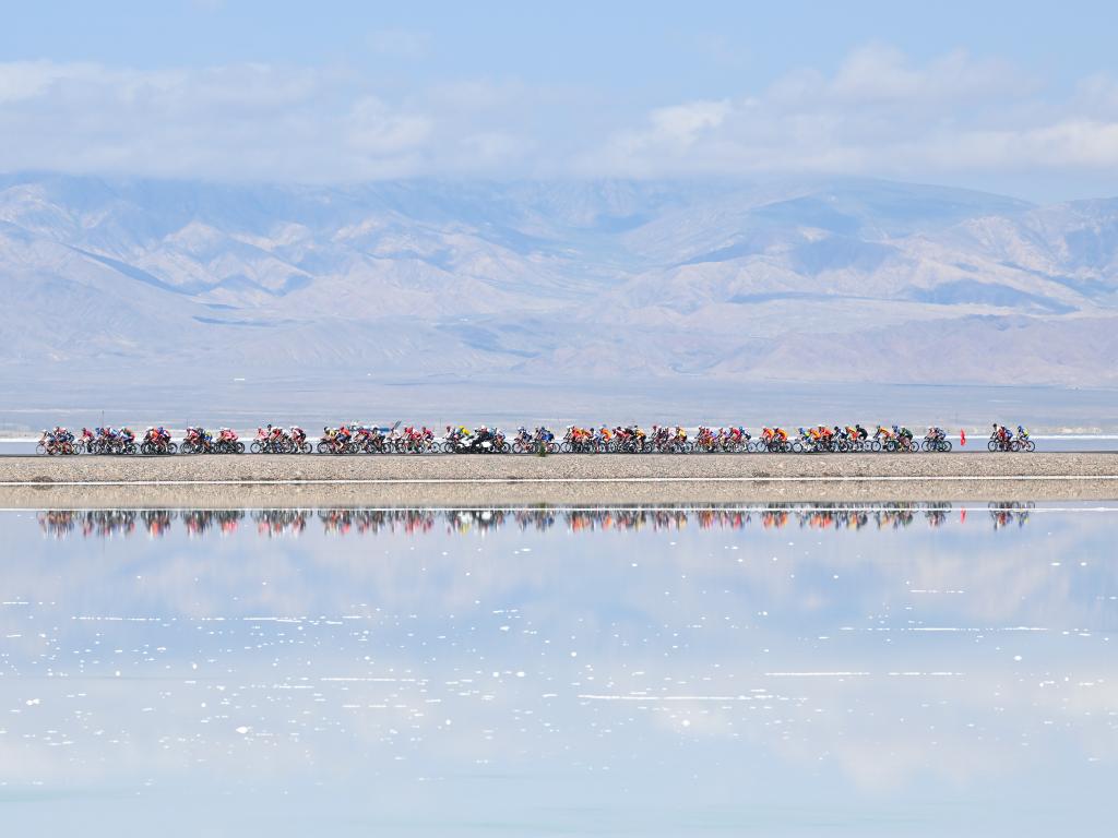 Participants compete during stage 6 of the 21st Tour of Qinghai Lake 2022 cycling race over 146km from Chaka to Dulan in northwest China's Qinghai Province, Aug. 1, 2022. (Xinhua/Zhang Long)