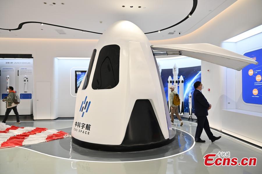 A model of space capsule is on display at a commercial aerospace industry base in Guangzhou, south China's Guangdong Province. (Photo: China News Service/Chen Chuhong)
