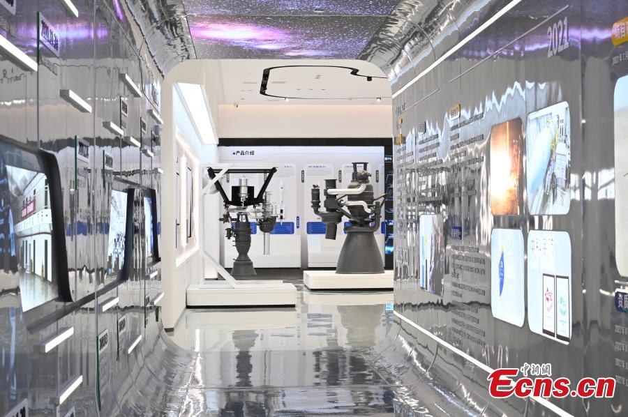 Models of liquid fuel engine for carrier rockets are on display at a commercial aerospace industry base in Guangzhou, south China's Guangdong Province. (Photo: China News Service/Chen Chuhong)