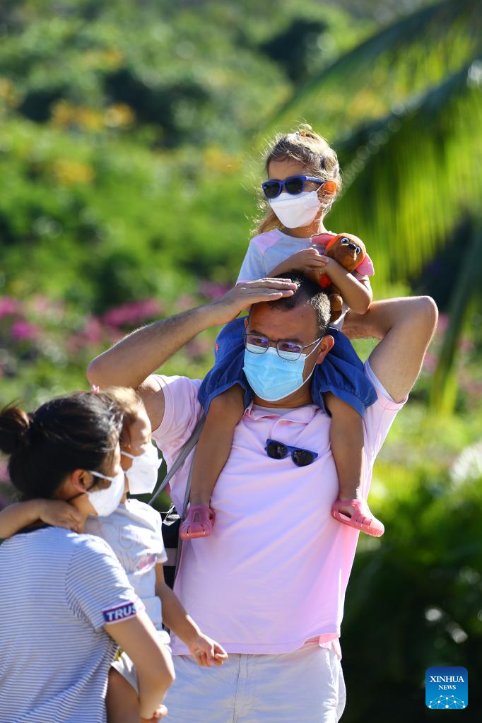 Tourists have fun at Nanshan scenic area in Sanya, south China's Hainan Province, Dec. 29, 2022. (Photo by Chen Wenwu/Xinhua)