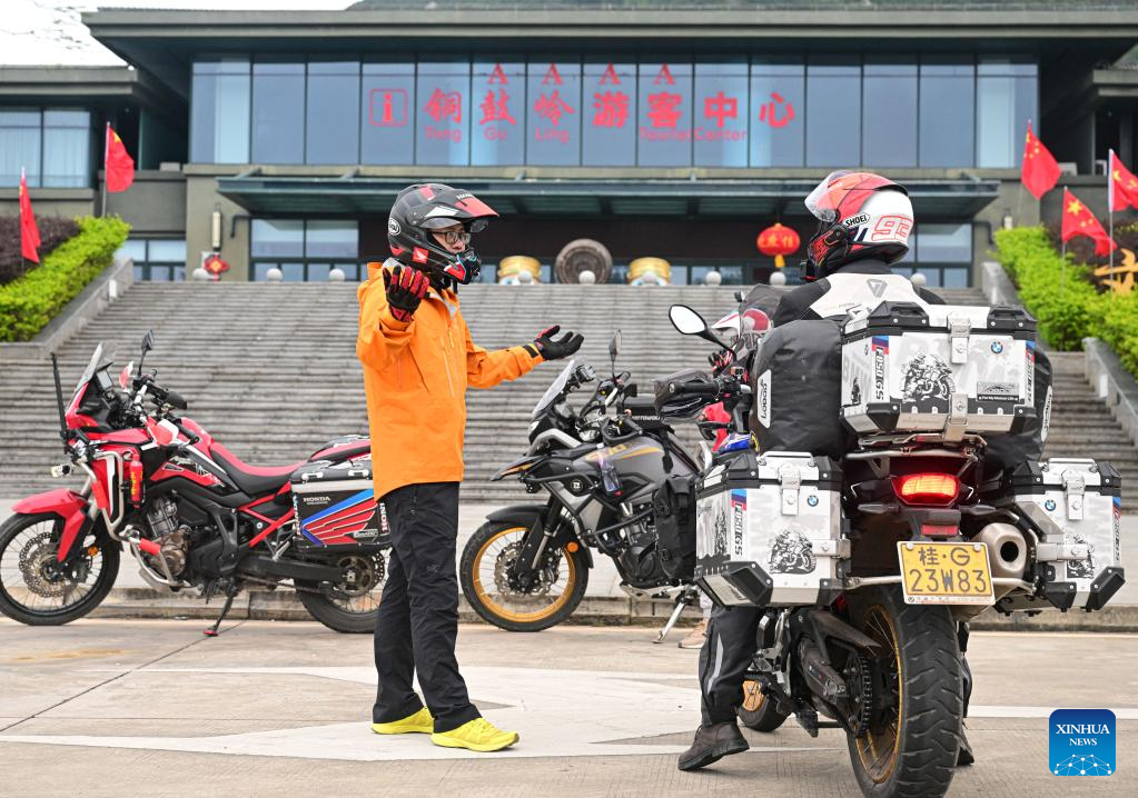 Tourists arrive at the Tongguling scenic area by motorcycles in Wenchang City, south China's Hainan Province, Dec. 28, 2022. (Xinhua/Pu Xiaoxu)