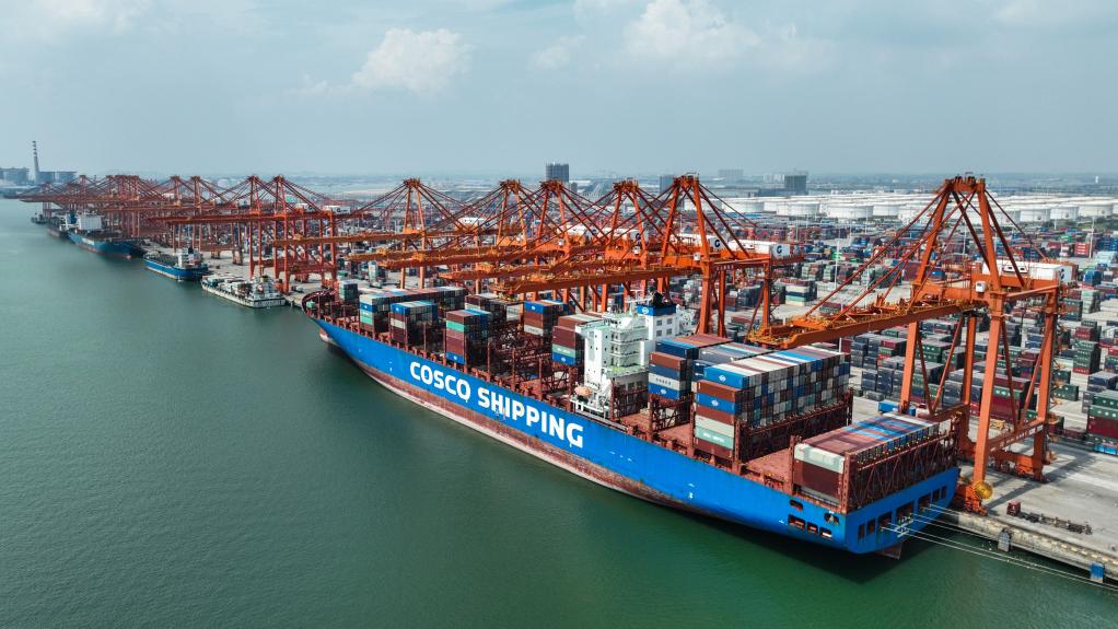 Aerial photo taken on Sept. 13, 2022 shows the Qinzhou Port in Qinzhou, south China's Guangxi Zhuang Autonomous Region. (Xinhua/Zhang Ailin)