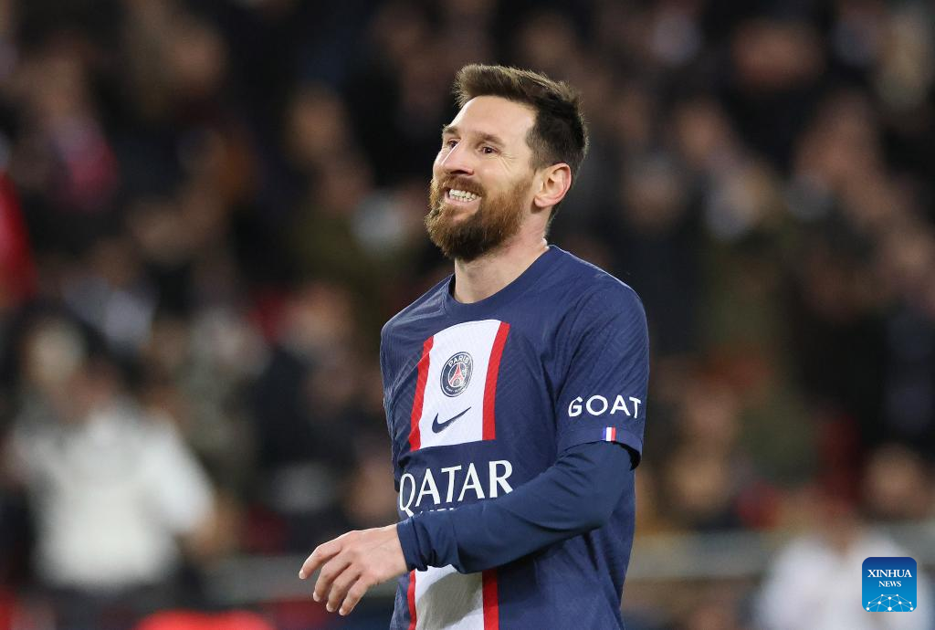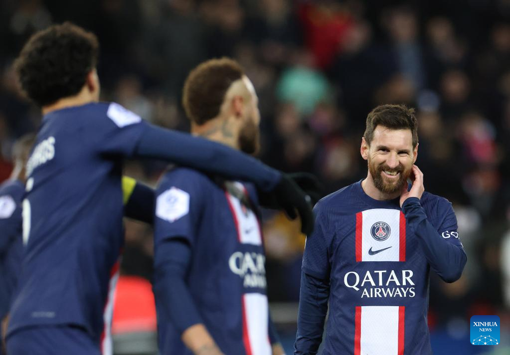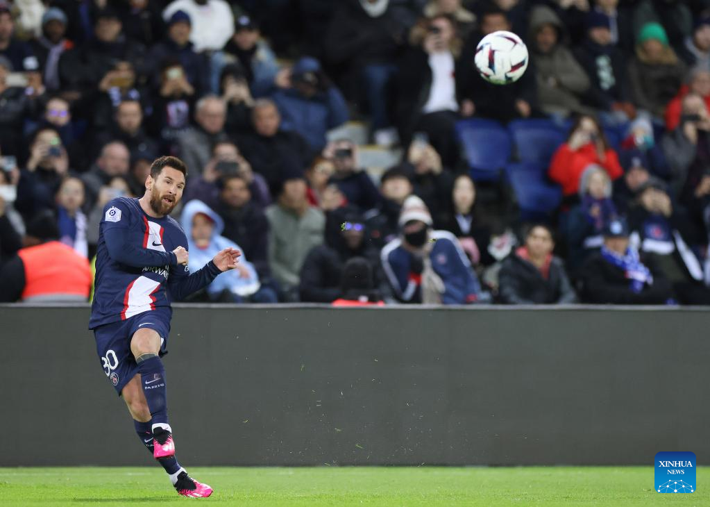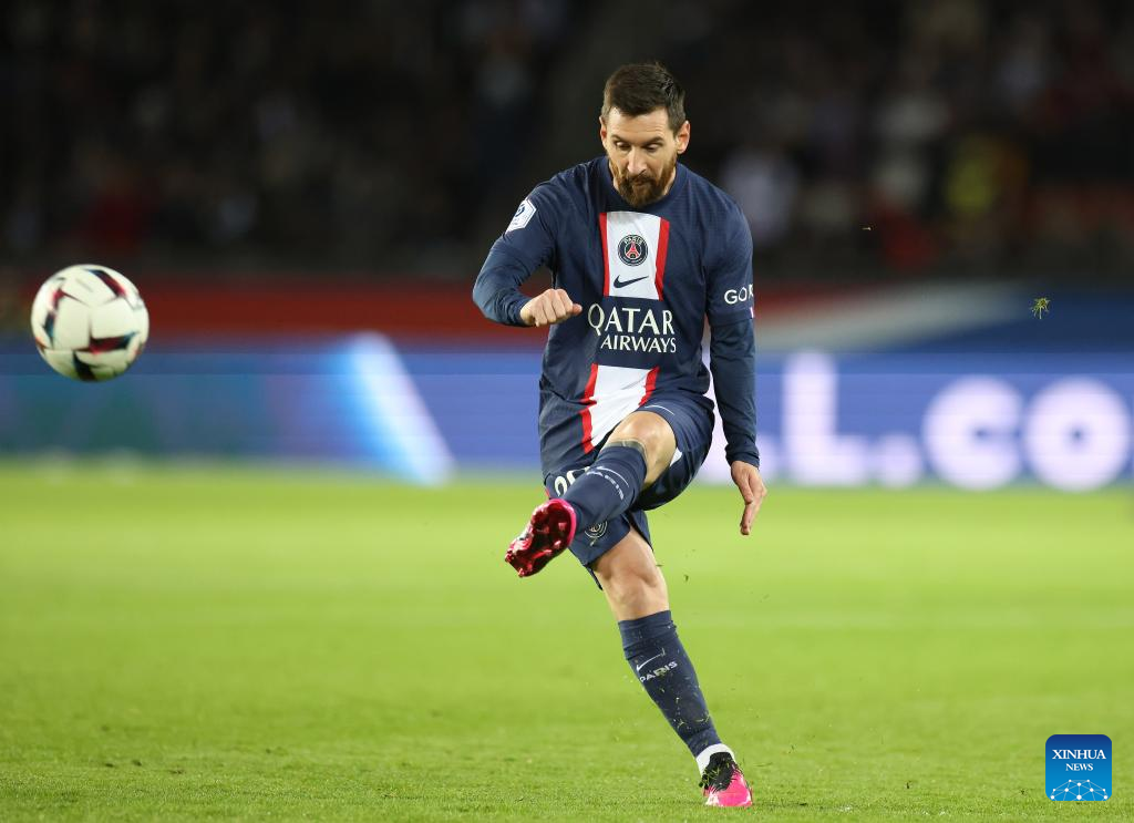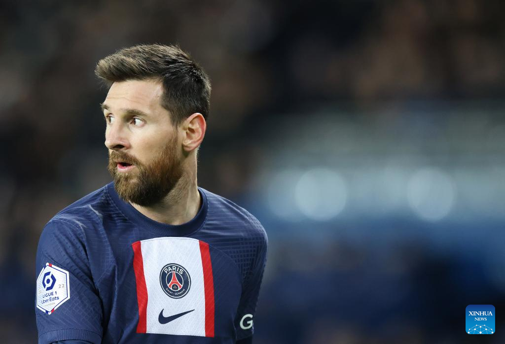 Paris Saint-Germain's Lionel Messi competes during the French League 1 football match between Paris Saint-Germain FC and Angers at the Parc des Princes stadium in Paris, Jan. 11, 2023. (Xinhua/Gao Jing)