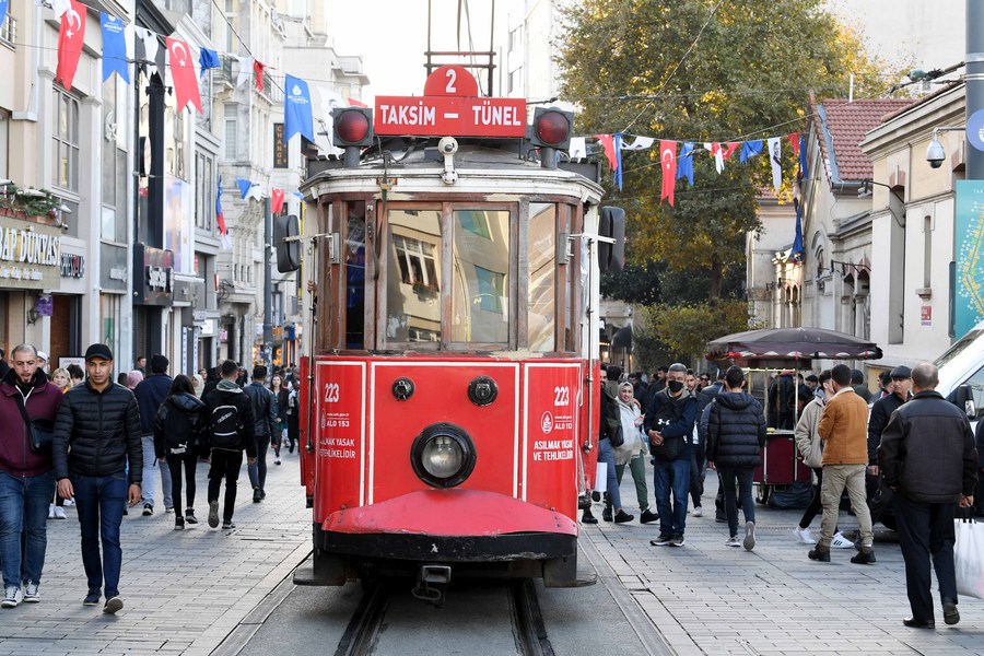Pedestrians walk on the Istiklal Avenue in Istanbul, Türkiye, Nov. 22, 2022. (Xinhua/Shadati)