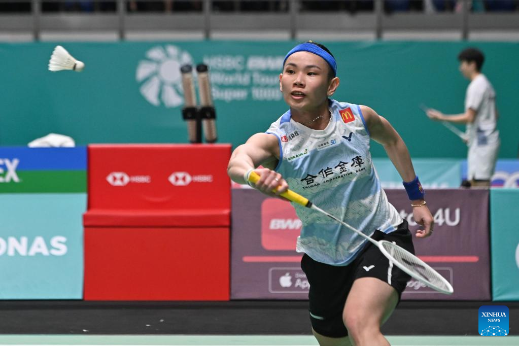 Chinese Taipei's Tai Tzu Ying hits a return during the women's singles round of 16 match against China's Han Yue at Malaysia Open 2023 in Kuala Lumpur, Malaysia, Jan. 12, 2023. (Photo by Chong Voon Chung/Xinhua)