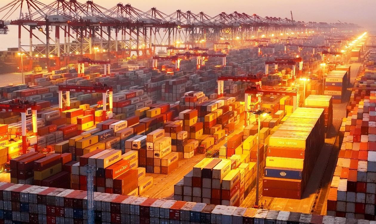 Photo taken on Jan. 7, 2023 shows the brightly lit container terminal of Shanghai Yangshan Deep Water Port in east China's Shanghai. (People's Daily Online/Ji Haixin)