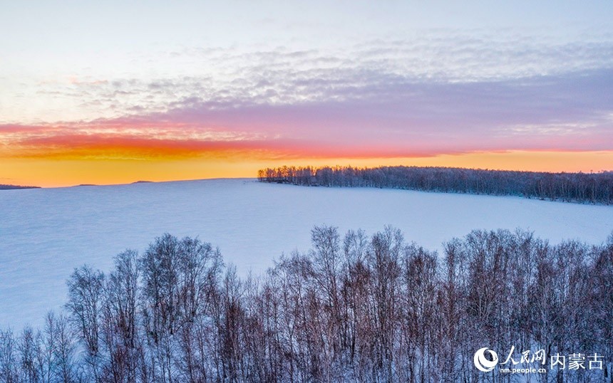 Under the sunset glow, the snow-covered land looks like a majestic Chinese freehand landscape painting in Greater Hinggan Mountains in north China’s Inner Mongolia Autonomous Region. (People's Daily Online/Li Ming)