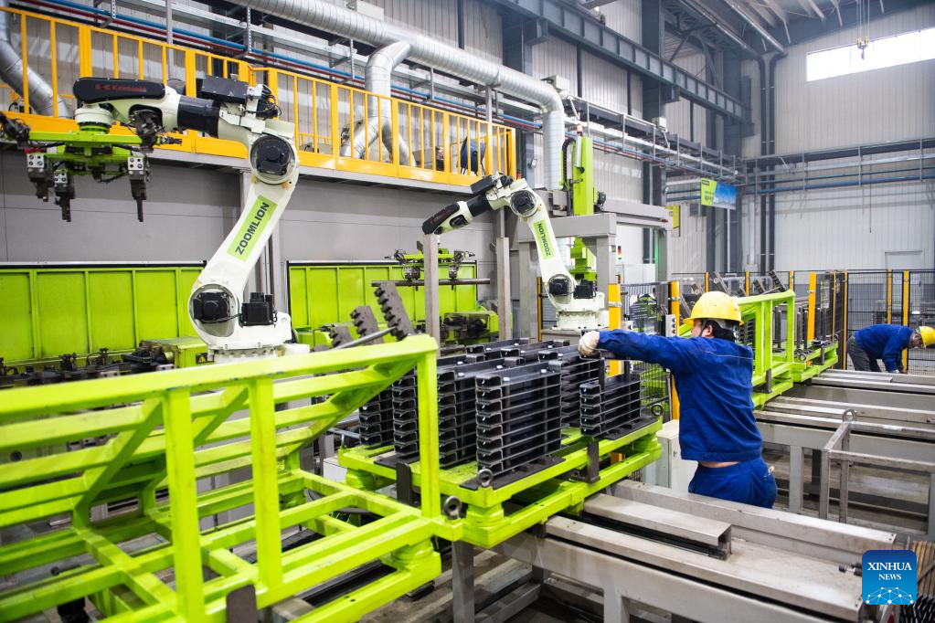 A staff member assembles equipment in a workshop of Zoomlion Heavy Industry Science and Technology Co., Ltd. at the Changde National High-Tech Industrial Development Zone in Changde City, central China's Hunan Province, Jan. 13, 2023.