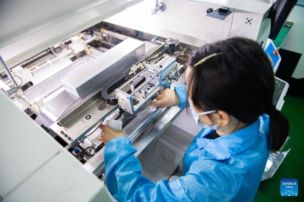 A staff member makes circuit boards in a workshop of a microelectronics technology company at the Changde National High-Tech Industrial Development Zone in Changde City, central China's Hunan Province, Jan. 13, 2023.