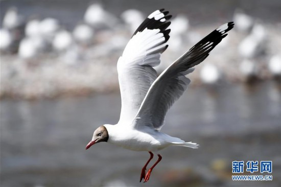 A flying brown-headed gull on Shaliu River (Xinhua/Zhang Hongxiang)