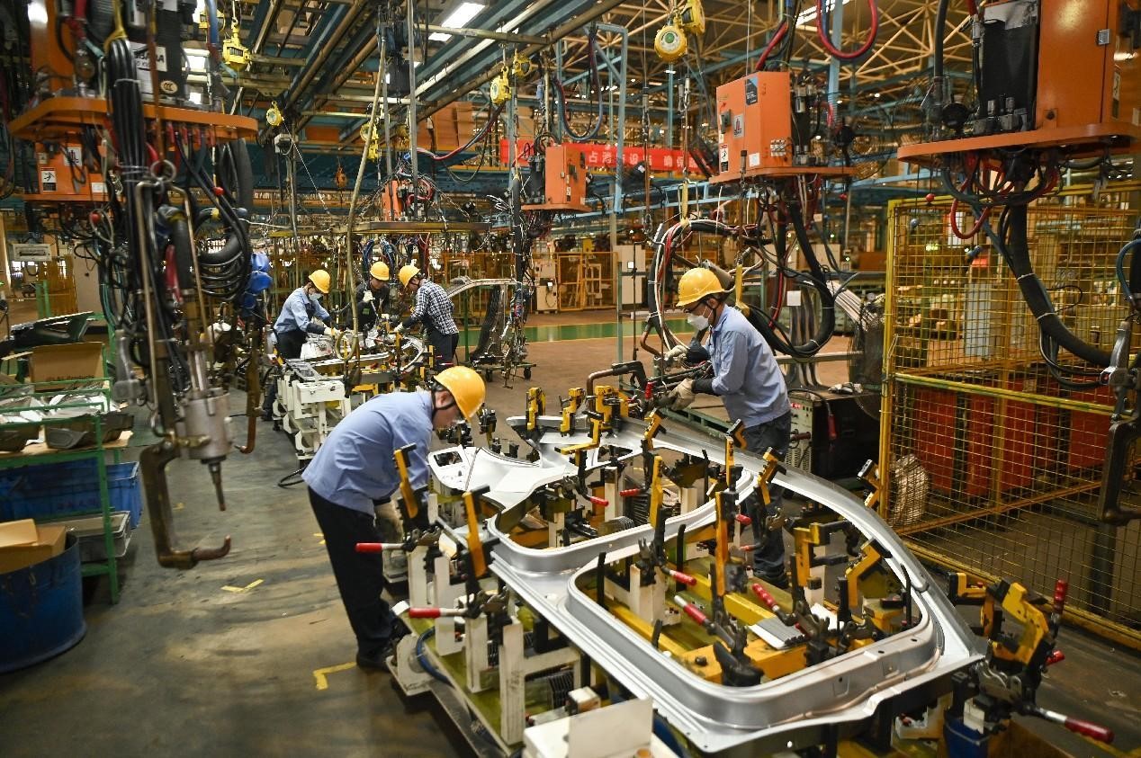 Employees of Chinese car maker FAW Haima Automobile Co., Ltd. are busy producing cars to be exported to the Philippines at the company's production base in south China's Hainan province, Sept. 5, 2022. (People's Daily Online/Shi Zhonghua)