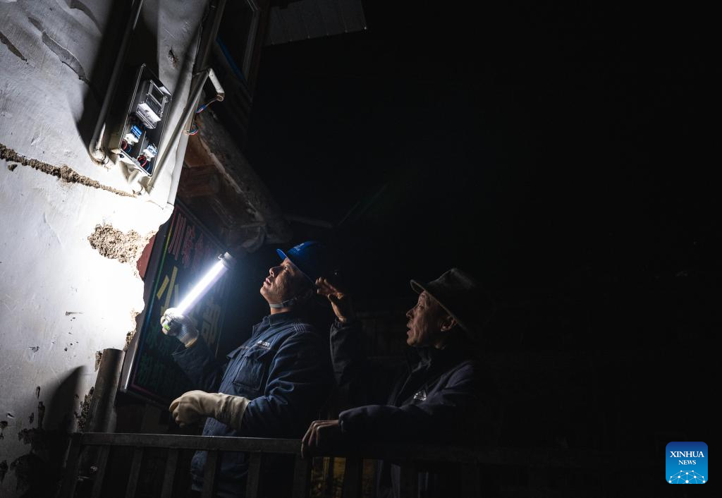 Wangden inspects power lines in Yubeng Village of Deqen County, southwest China's Yunnan Province, Jan. 8, 2023.