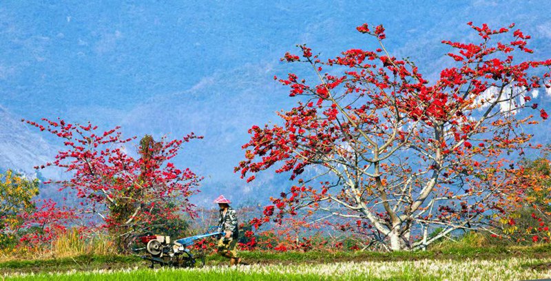 Photo shows kapok flowers in bloom in Changjiang Li autonomous county, south China's Hainan Province. (Photo courtesy of the publicity department of the CPC Changjiang County Committee)