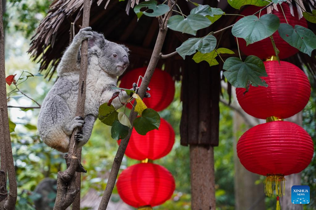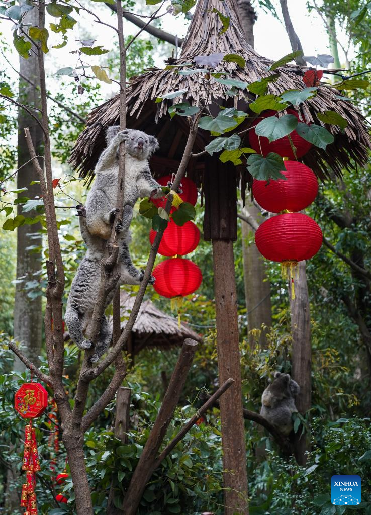Koalas are seen at the Chimelong Safari Park in Guangzhou, south China's Guangdong Province, Jan. 17, 2023. The total of 66 koalas from a family in seven generations living at the park made a public appearance to greet their fans before the Spring Festival. (Xinhua/Liu Dawei)