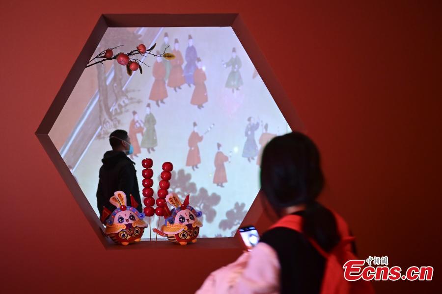 Visitors view cultural relics during a themed exhibition at the National Museum of China in Beijing, Jan. 18, 2023. (Photo: China News Service/Tian Yuhao)