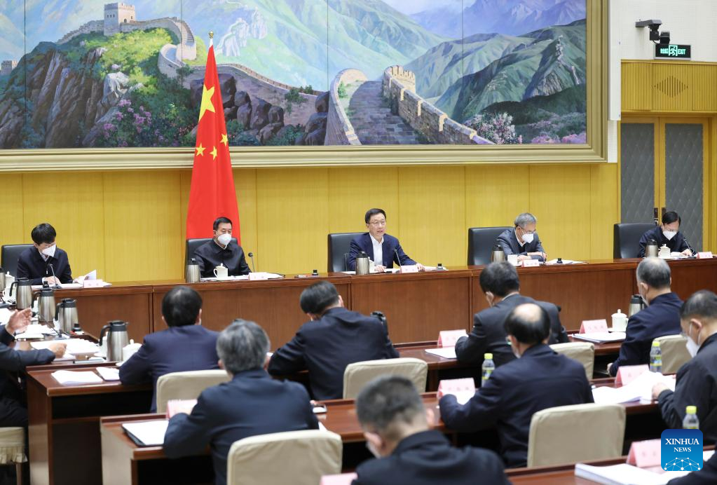 Chinese Vice Premier Han Zheng, also head of the food safety commission of the State Council, presides over a meeting of the commission in Beijing, capital of China, Jan. 18, 2023. (Xinhua/Liu Weibing)