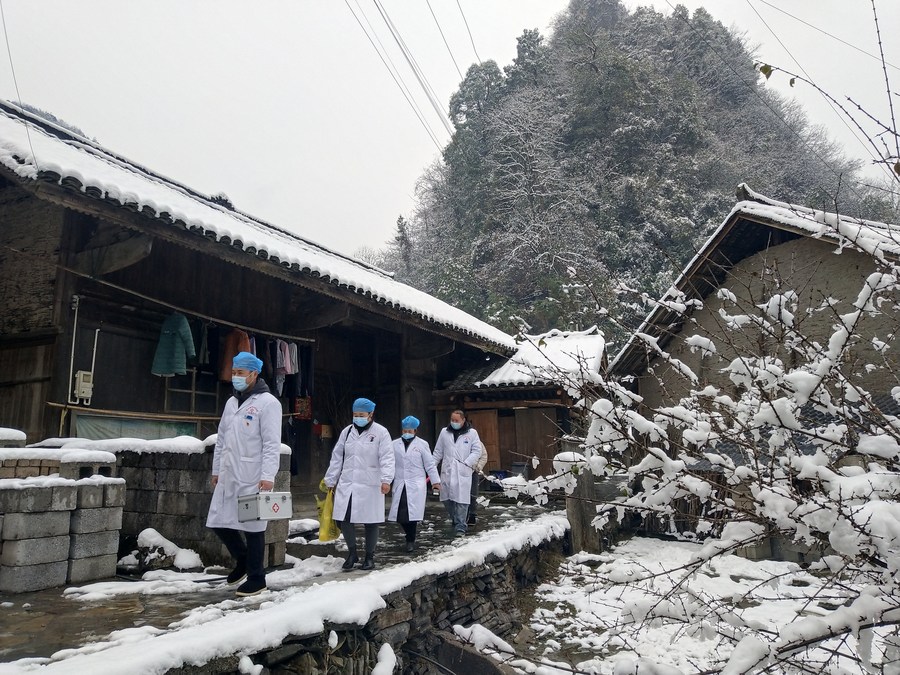 Rural doctors visit villagers to provide medical support in Jiwei Township of Huayuan County, Xiangxi Tujia and Miao Autonomous Prefecture in central China's Hunan Province, Dec. 29, 2022. (Photo by Jian Biao/Xinhua)