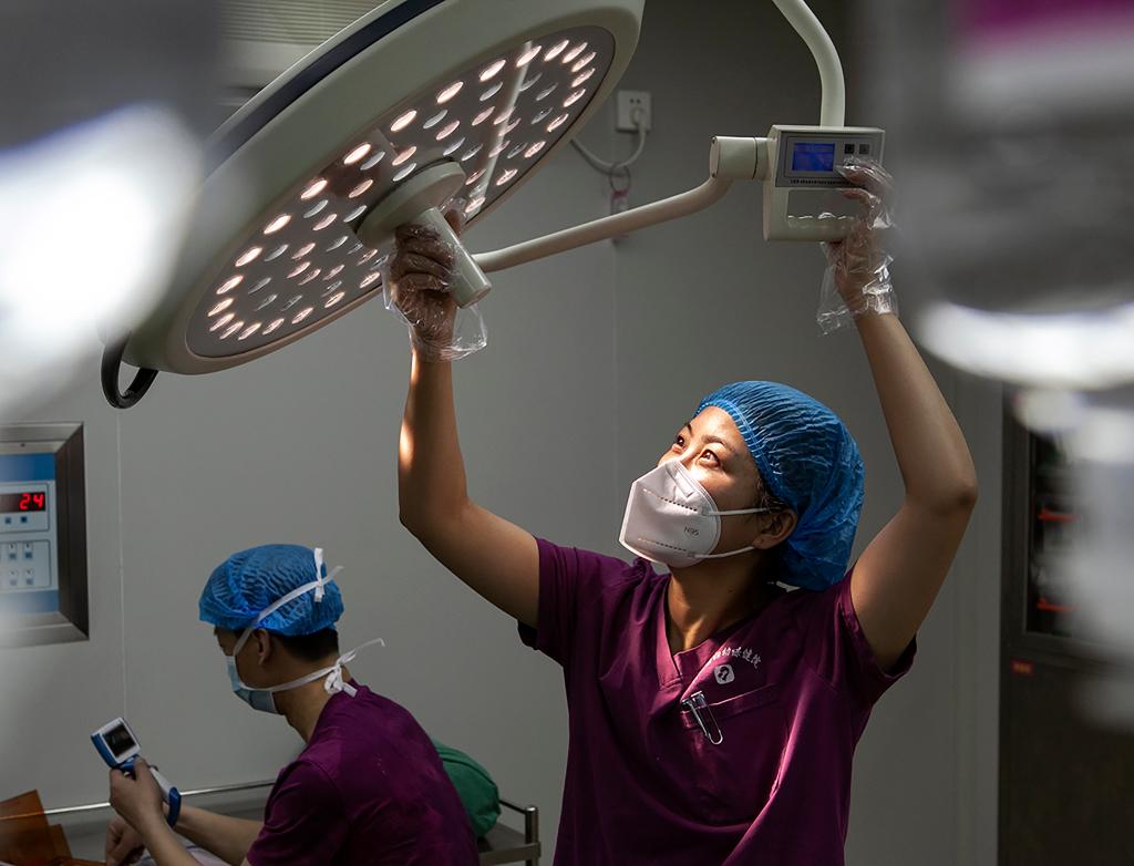 Medical workers prepare an operation at the Maternity &Child Care Center of Boai County in Jiaozuo City, central China's Henan Province, Jan. 21, 2023.