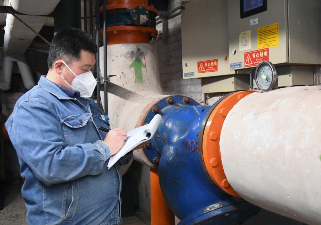 A technician checks the heating equipment at a heating station of Beijing Jiaotong University in Beijing, capital of China, Jan. 21, 2023.