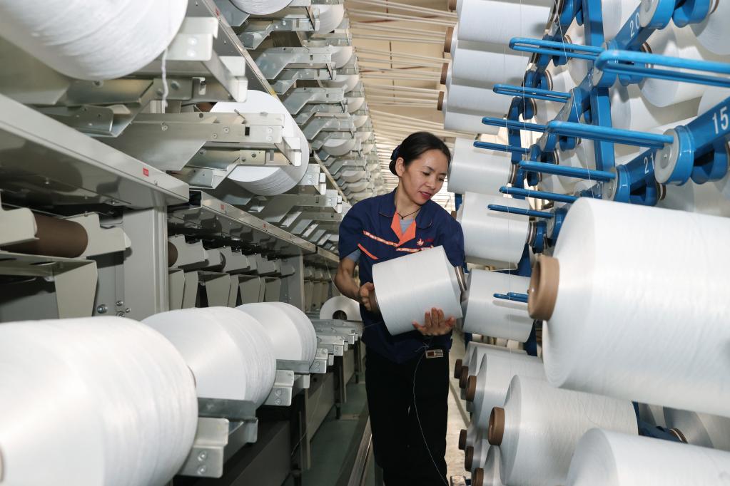 A worker works at a chemical fiber company in Huzhou, east China's Zhejiang Province, Jan. 21, 2023.