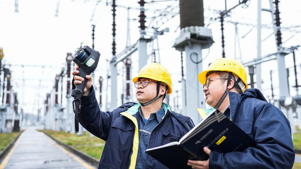 Technicians inspect a transformer substation in Guiyang, southwest China's Guizhou Province, Jan. 21, 2023.