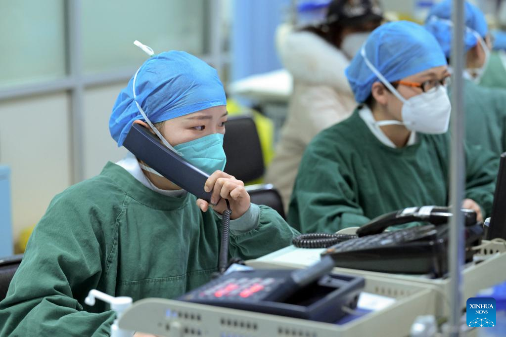 Medical staff work at the emergency department of the Second Affiliated Hospital of Anhui Medical University in Hefei, east China's Anhui Province, Jan. 21, 2023. Medical staff stick to their posts during the Spring Festival holiday. (Xinhua/Zhou Mu)